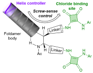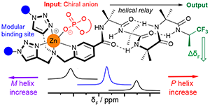 Remote conformational responses to enantiomeric excess in carboxylate-binding dynamic foldamers.